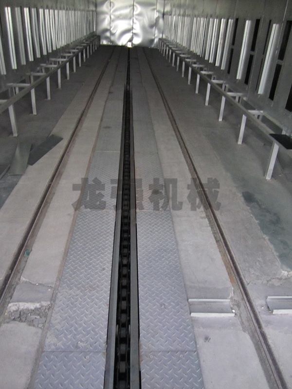 普通地推式輸送機是一種裝設在地面下的輸送設備,可推動在地面上運行的載物小車以完成特定的工藝過程。與普通懸掛線輸送機形成上下配合,且與XT100、160型輸送機的許多部件可通用。普通地推式輸送機有驅動、張緊軌道、鏈條、支承滑架、推頭小車及載物小車等組成。牽引鏈條與推頭小車配合,帶動載物小車運行。該型式輸送機主要用于多工位的裝配、涂裝等工藝過程,載物小車在運行中完成裝配或表面處理等工序。